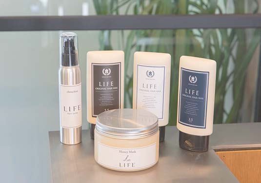 LIFEでは、化学物質によるダメージに向き合い、髪を極力痛めない薬剤を独自で開発。通常の薬剤とは全く違う、滑らかでダメージをほとんど無くした仕上がりが叶います。また、カラーなどの薬剤は髪の油分を奪い活性酸素を発生させます。薬剤が残留するとかゆみなどの頭皮トラブルを引き起こすため、頭皮の保護・保湿、頭皮に残る薬剤の徹底除去で頭皮環境を整える手法で施術を行います。トリートメントも同時に行い、栄養分も一緒に髪の中に閉じ込めることで回数を重ねるごとに健康なツヤ髪へアップデートしていきます。