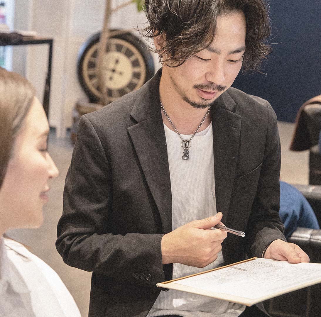 カット、カラー、パーマ、ストレート。すべてのメニューに髪質改善ヘアエステを行ってからデザインに入ります。一人ひとりの髪のコンディションを診断し、ダメージなどのトラブルを解決して美しい“素材”を創ります。